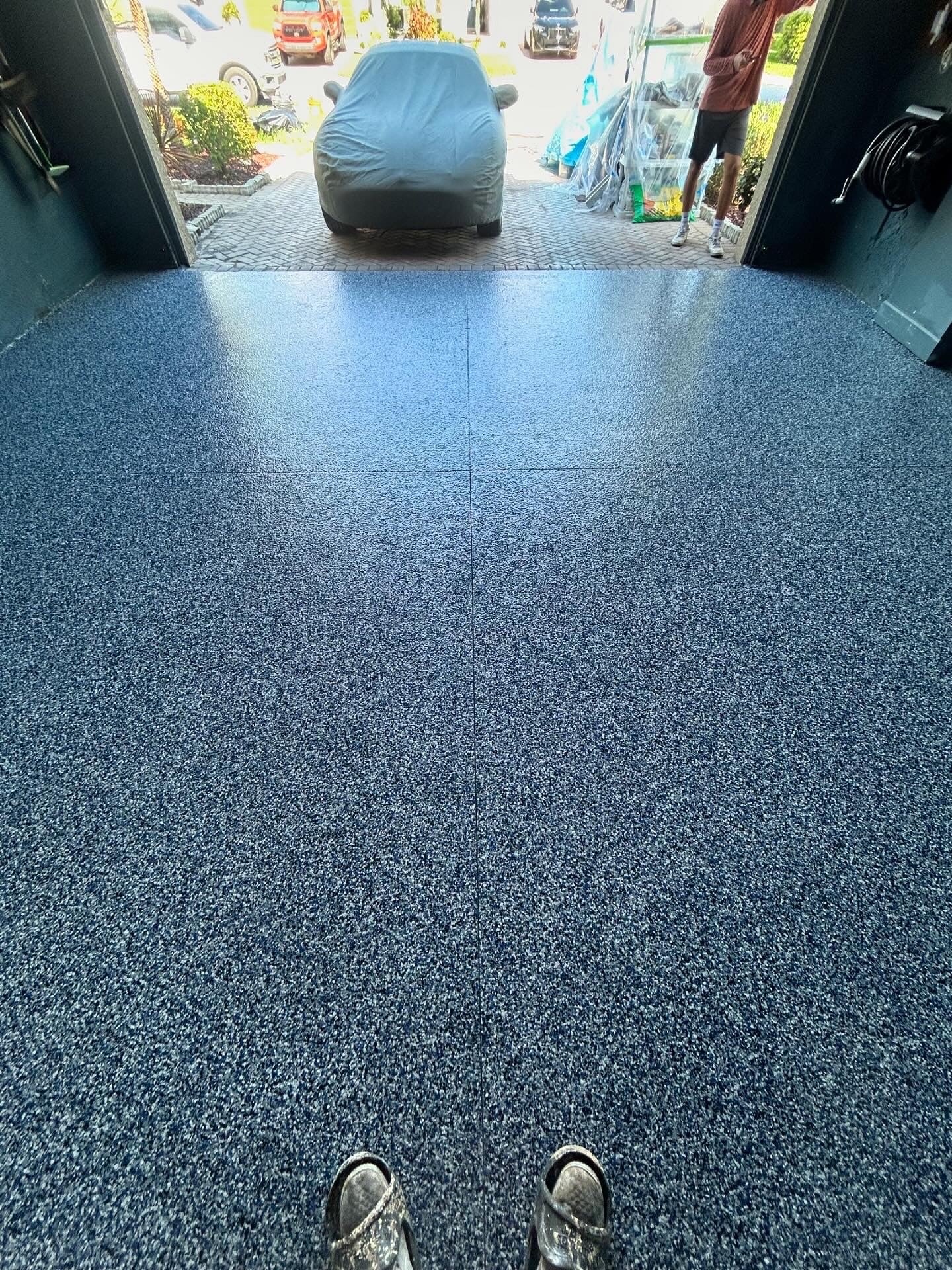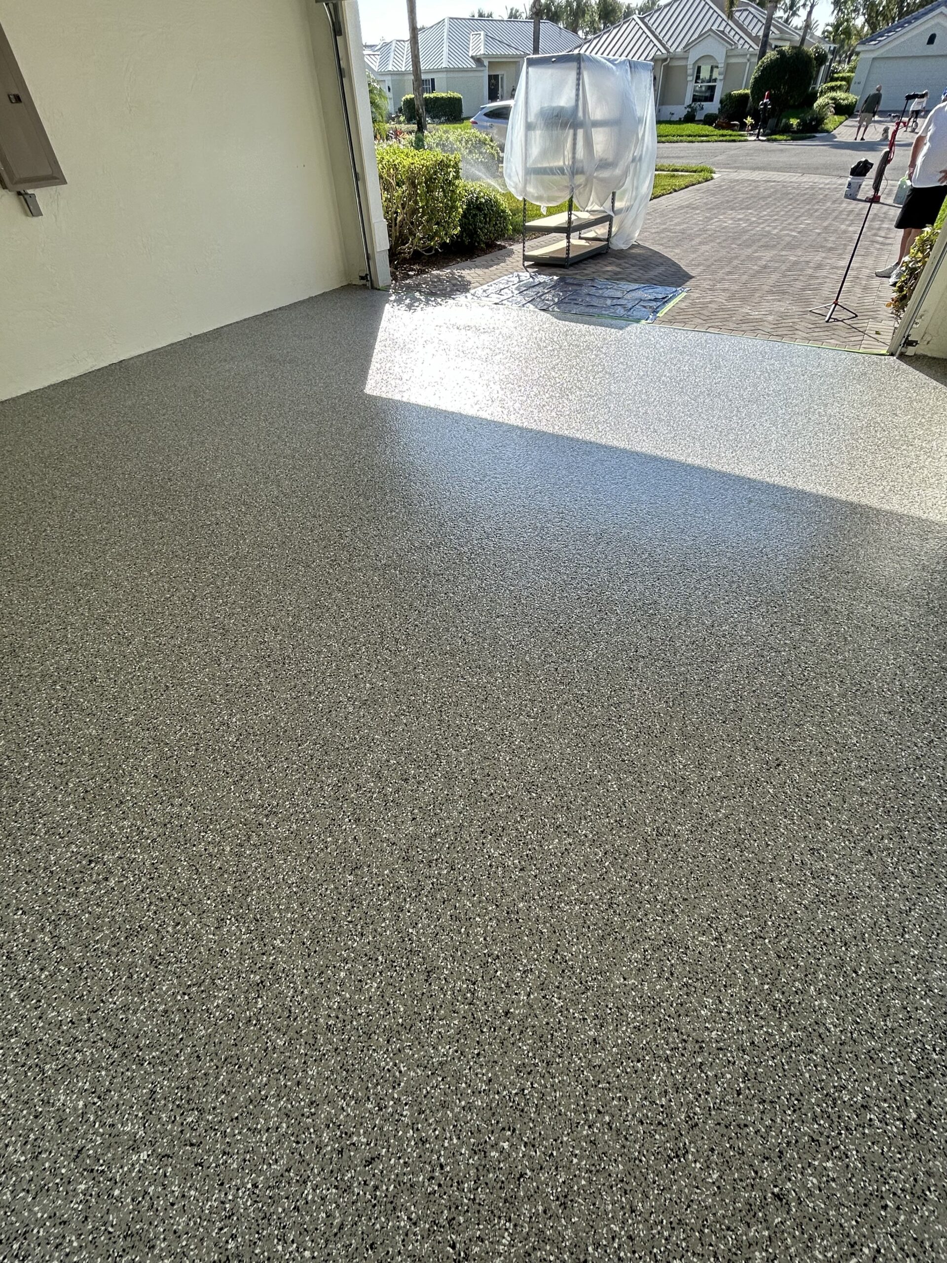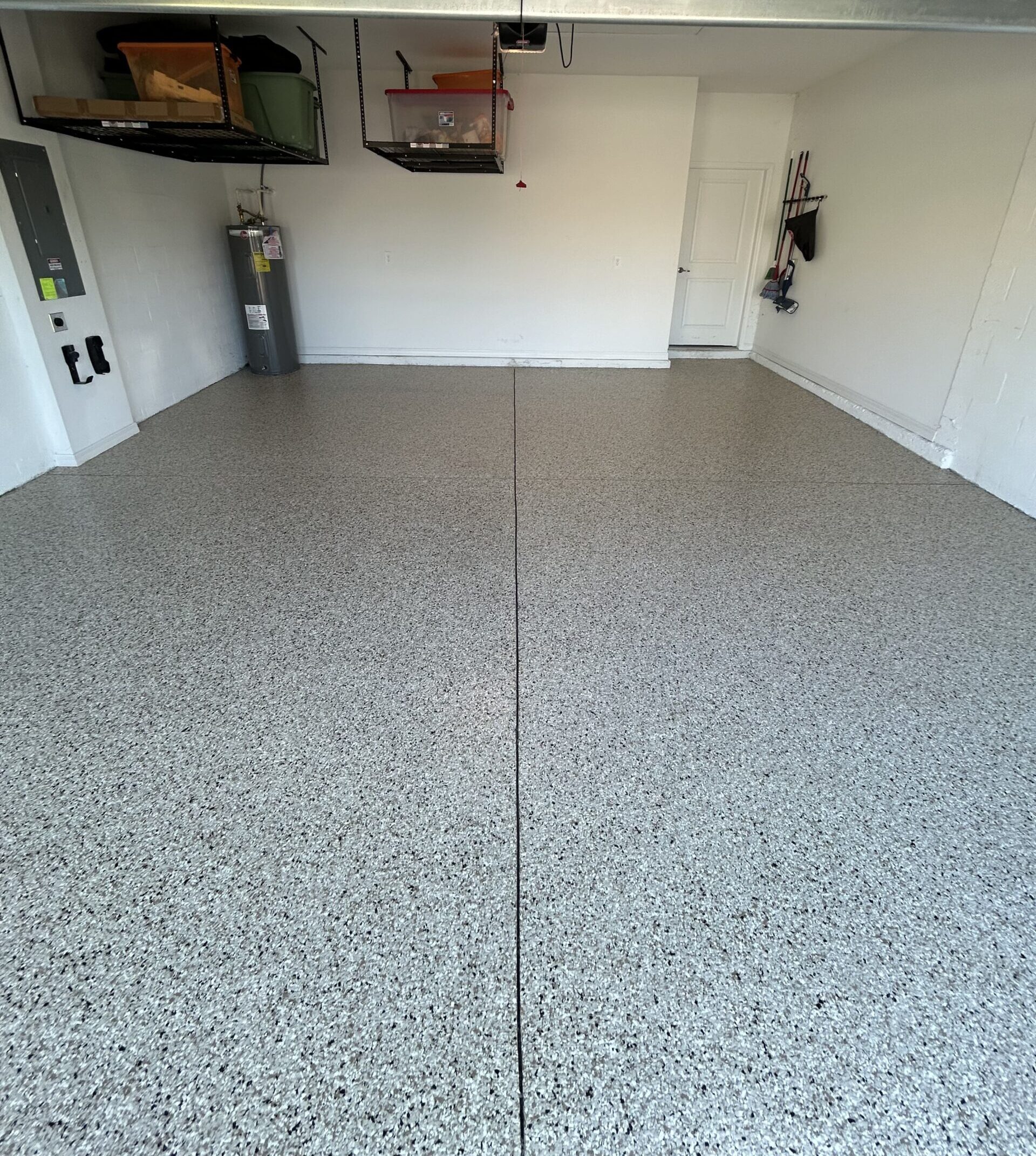 Full Broadcast Flake Floor. Base Coat Epoxy, Top Coat Polyaspartic.