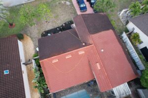 Soft wash roof cleaning can help bring color back to your concrete roof tiles. Organic growth discolors concrete tiles fast due to moisture build up. Our low pressure soft wash application treats the organic growth restoring the original color of the roof tiles. You get that wanted curb appeal back while also ensuring longer life for your roof. Take a look at some jobs we recently completed to get a good understanding how dirty concrete tiles can get here in SWFL. Drone shots show half the job completed from an aerial view. You can see the portion of the roof we have treated compared to the side that is still dirty. Click read more to see the photos!